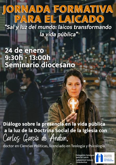 9:30 am - 1:00 pm Jornada formativa para el laicado enero 24 @ 9:30 am - 1:00 pm Jornada formativa para el laicado "Sal y luz del mundo: laicos transformado la vida pública" Seminario diocesano 24 de enero, 9:30h -13:00h