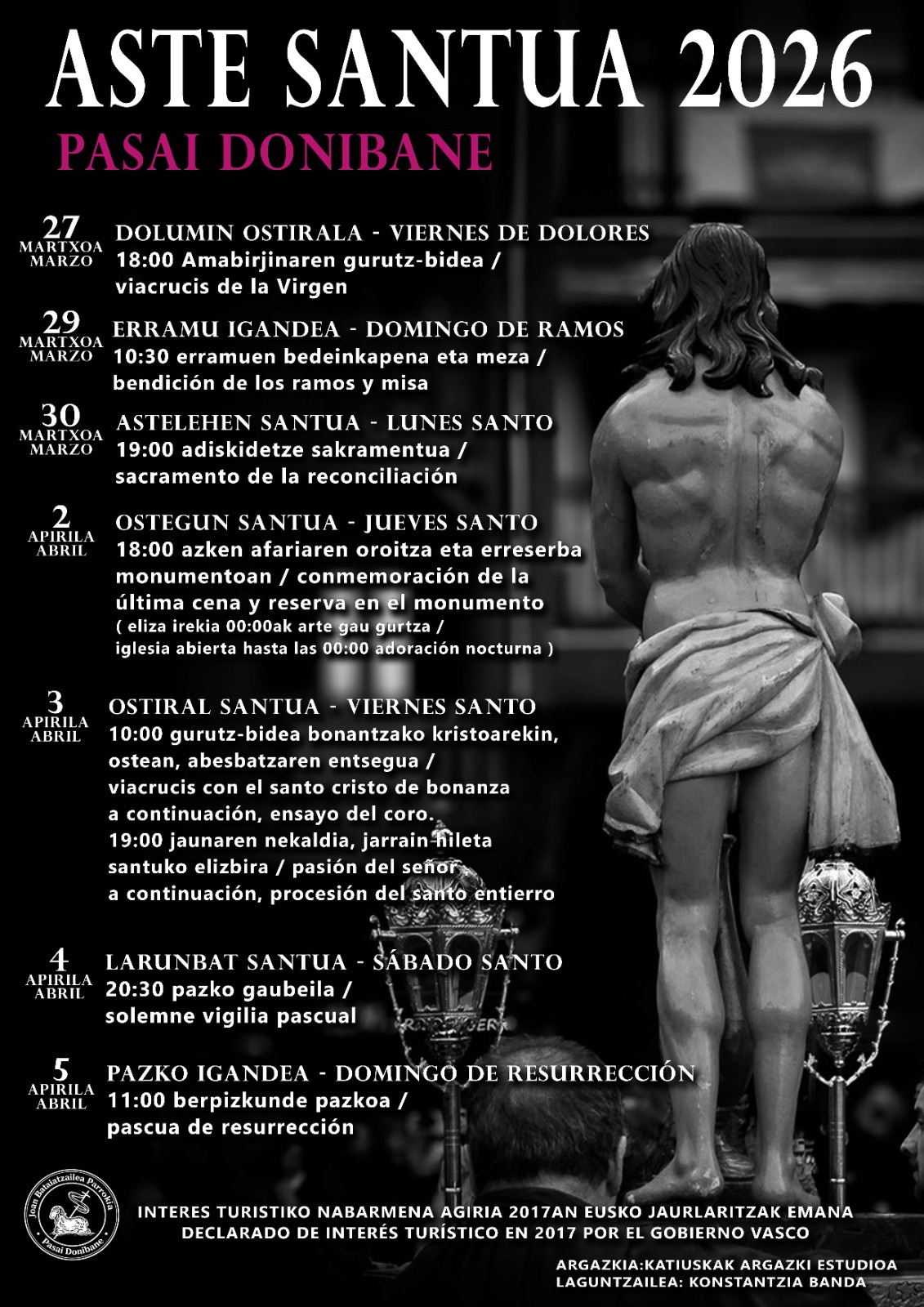 En Pasajes San Juan, ya se ha socializado el calendario de actividades que se llevaran a cabo a lo largo de siete días durante la Semana Santa. En esta localidad costera, la Semana Santa fue declarada por el Gobierno Vasco en 2017, de “interés turístico”.