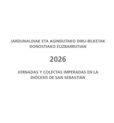 Jardunaldiak eta Agindutako Diru-bilketak 2026 Deskargatu Egutegi Pastorala 2025-2026 Deskargatu Ebanjelizatzearen Elizbarrutiko Egitasmoa 2021-2026 Deskargatu Kanpora irtengo den Eliza – Elizbarrutiko marko pastorala Deskargatu Jardunaldiak eta Agindutako Diru-bilketak 2025 Deskargatu Agindutako Diru-bilketak 2024 Deskargatu