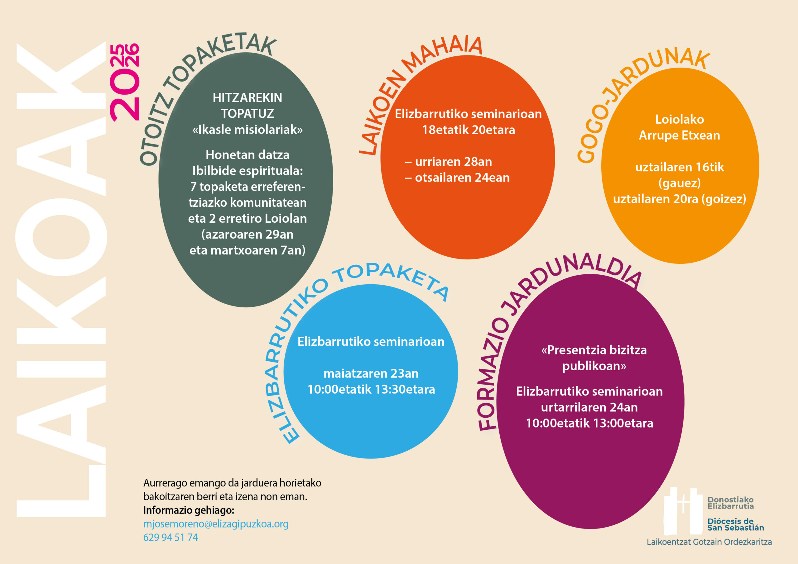 - Elizbarrutiko laikoen arteko topaketa, elkarrizketa, hausnarketa eta elkarlanaren alde egitea.
