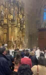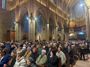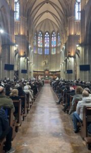 El templo presentaba un aspecto imponente, completamente lleno, con numerosas personas siguiendo la ceremonia de pie, al no quedar ya sitio ni en los bancos ni en las sillas suplementarias que se habían dispuesto para la ocasión.