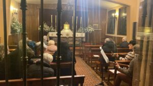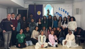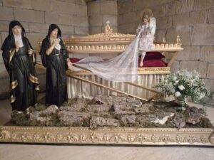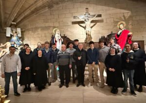 Precisamente en Irún, el obispo de San Sebastián, Mons. Fernando Prado, visitó el Jueves Santo la parroquia de Santa María del Juncal, donde pudo conocer la exposición de pasos, saludar a los acólitos que participaban en convivencia y encontrarse también con las religiosas de la parroquia, compartiendo con ellos este día central del Triduo Pascual.